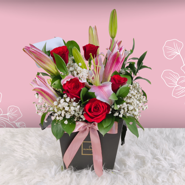 S – RM139 M – RM169 L – RM179A beautiful arrangement of lilies, roses, and fresh flowers, all in one lovely box! Perfect for adding a touch of natural beauty and fragrance to any space. Our Floral Box is sure to delight with its stunning blooms.