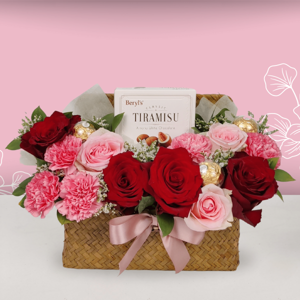 Fresh Roses, Carnation, Ferrero Rocher, Beryls Tiramisu
